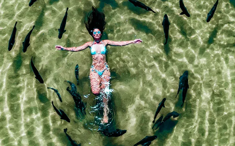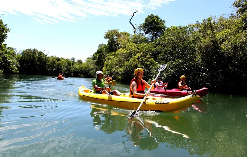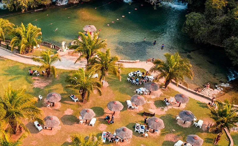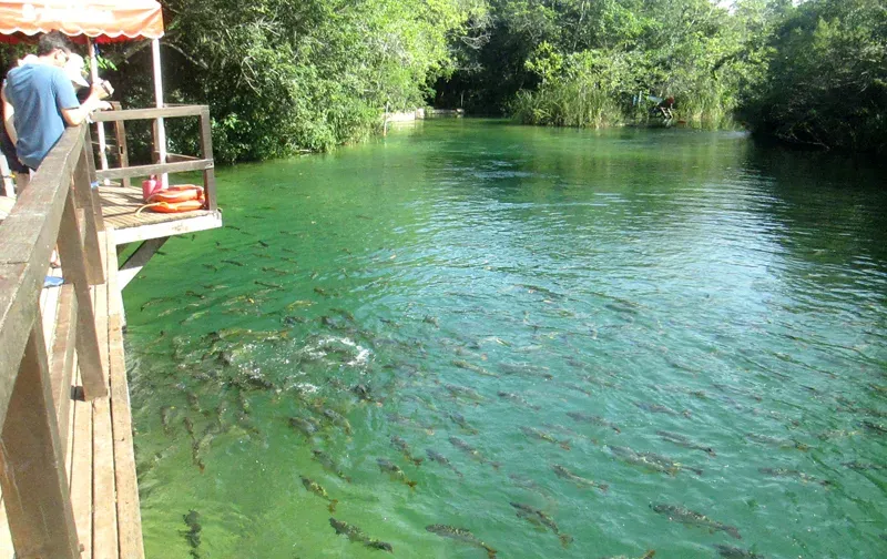 Ideal para quem busca tranquilidade, o passeio recebe um número reduzido de visitantes. Tem um deck de 30 metros no Rio Formoso, além de restaurantes e estrutura completa.