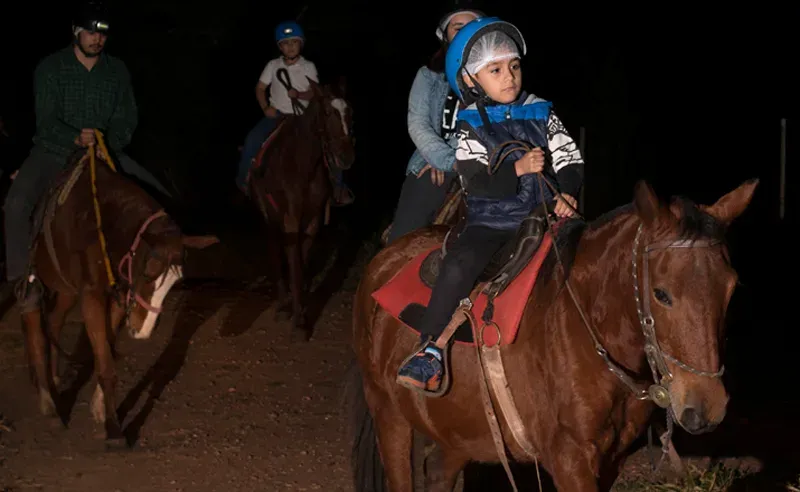 Uma cavalgada com 1h30 de duração oferece uma interessante experiência sobre a vida do homem no campo. Antes do passeio os participantes são recepcionados com uma roda de Tereré e ao final é servido um delicioso lanche típico sul-mato-grossense. O passeio une diversão e um resgate histórico das tradicionais comitivas pantaneiras.
