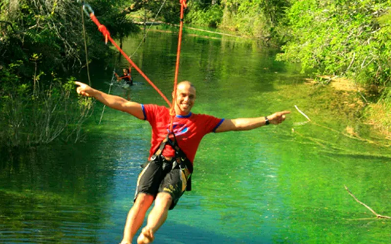 Formoso Adventure – A emoção começa em um voo incrível em uma tirolesa de 520 metros, passando por um túnel verde entre as árvores que leva a um visual surpreendente e único da Serra da Bodoquena.