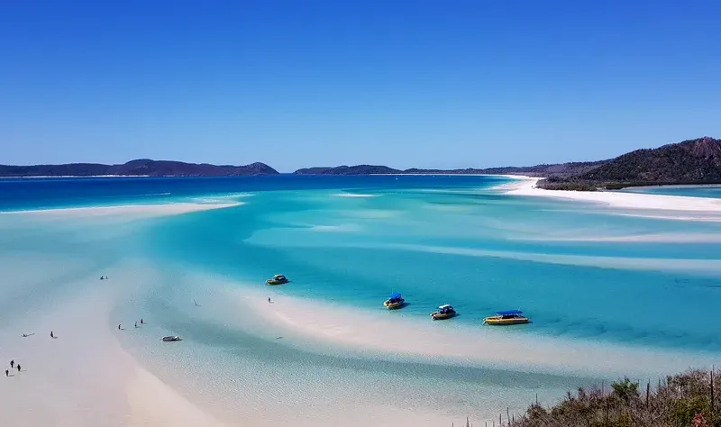 Conjunto de 74 ilhas imaculadas localizadas na região da Grande Barreira de Corais, tem apenas oito são habitadas. Suas águas de coloração verde-azuladas são quentes e a vida marinha se apresenta de maneira espetacular e os corais têm as cores do arco-íris.