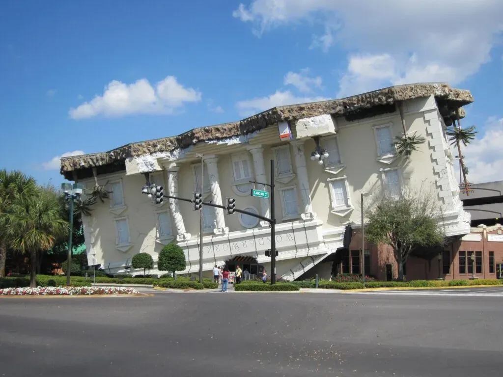 A atração WonderWorksé interativa e exercita a mente. Localizado em Kissimmee, o edifício é projetado para parecer uma casa de ponta cabeça, com a fachada virada para o chão. É dividida em seis áreas temáticas: