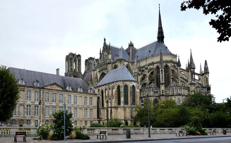 Principal atração turística da cidade, a monumental catedral é uma obra prima da arte gótica no século 13. Patrimônio da Humanidade, levou cerca de 300 anos para ser construída – 1211 a 1516 – e sua imponente fachada conta 2.303 estátuas encrustadas que contam passagens da Bíblia. Destaque para o Anjo Sorridente, a única escultura do conjunto que está sorrindo. Vinte e cinco reis da França foram coroados na catedral entre os anos de 1027 e 1825.