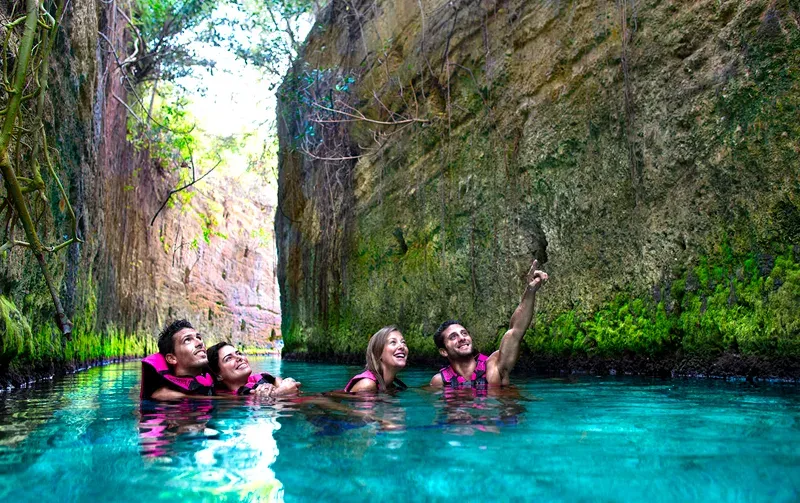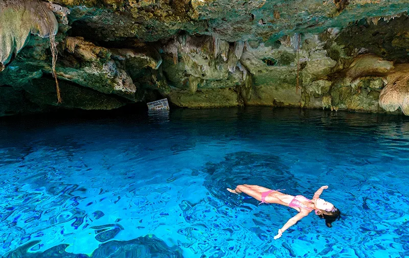 cenotes nos arredores de Cancún. Alguns combinam passeios a cavalo, quadricíclo e tirolesa.