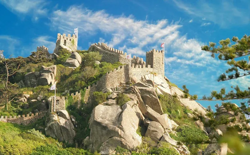 Fortaleza erguida no século 10, após a conquista muçulmana da Península Ibérica, o Castelo dos Mouros está distante apenas 850 metros do Palácio da Pena. Oferece vista maravilhosa da região.