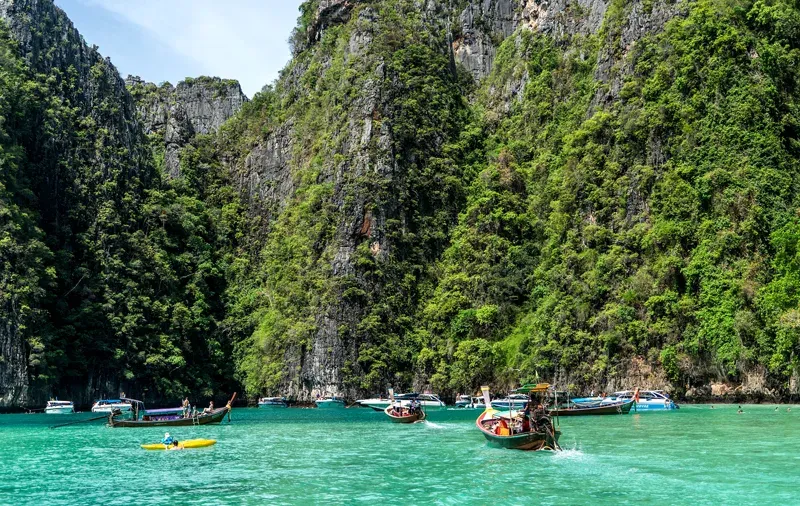 Localizada na ilha de Koh Phi Phi Leh, a segunda maior do arquipélago de Phi Phi, Maya Bay é um dos lugares que mais recebem turistas na Tailândia;