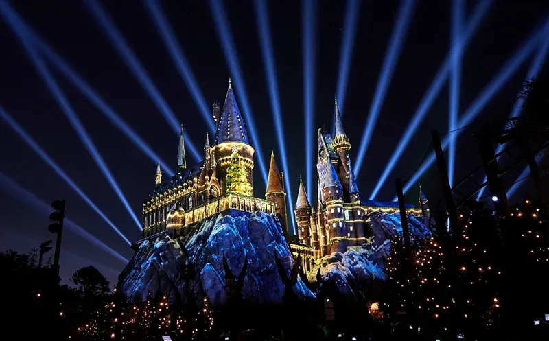 Espetacular show noturno no castelo de Hogwarts reúne luzes, música e efeitos de projeção. Acontece apenas em datas selecionadas.