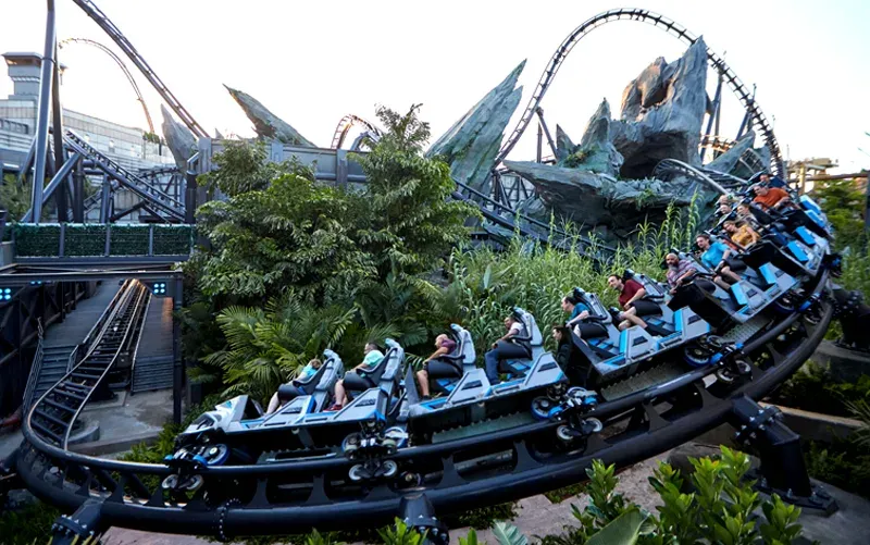 A Jurassic World VelociCoaster coloca os visitantes dentro do habitat dos dinossauros, em uma aventura de tirar o fôlego. São espirais de 360 graus e uma manobra invertida que se estende por mais de 30 metros de pista. E, quando despenca em uma queda acentuada de 80 graus, ela faz jus ao seu nome, proporcionando uma experiência de montanha-russa incomparável.