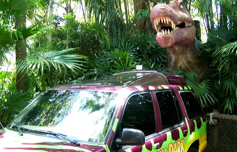 - Raptor Encounter – Momento de interação com um dinossauro em tamanho real e com movimentos programados por computador. As feições são perfeitas.