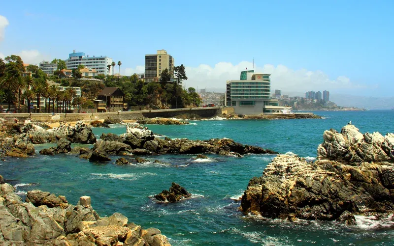 Principal desatino litorâneo do Chile, Viña del Mar é uma cidade moderna e muito bem estruturada. Conhecida como “Cidade Jardim” é muito procurada pelos chilenos durante a temporada de verão. Apesar das águas geladas do Pacífico.
